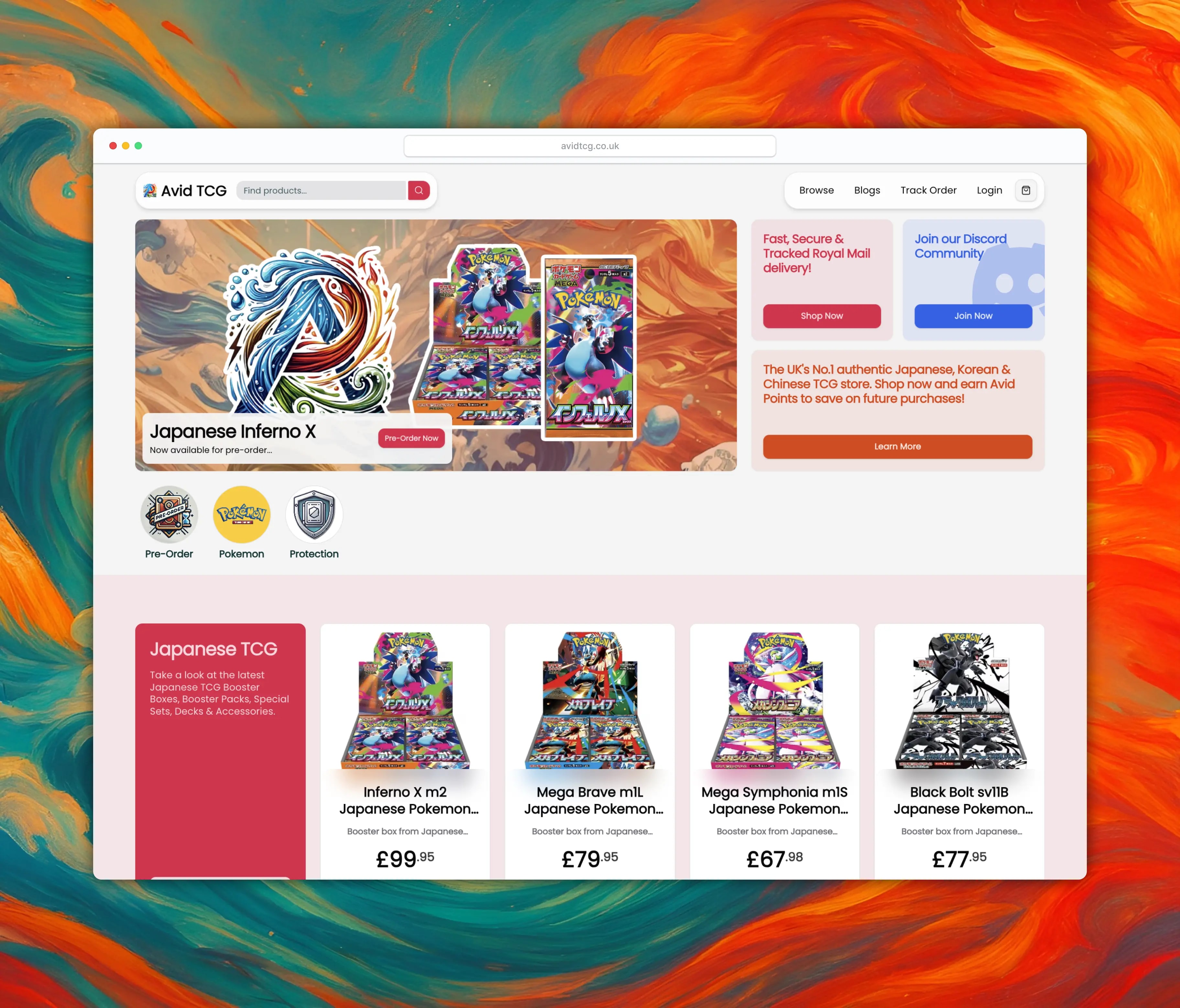 With Avid TCG we are building a portal into a wide world of TCG. A fast, custom shop for Japanese, Korean, and Chinese TCG with smooth drops and simple admin.